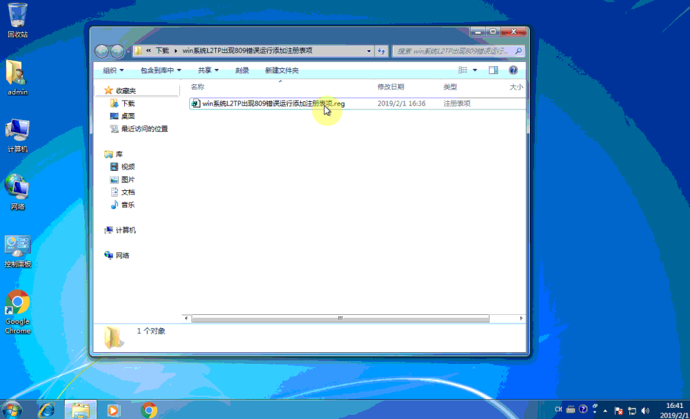 (如果使用PPTP连接可以忽略此步)首先下载注册表项,解压后直接运行即可添加注册表。然后重启下系统。